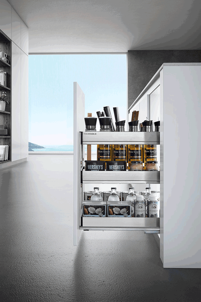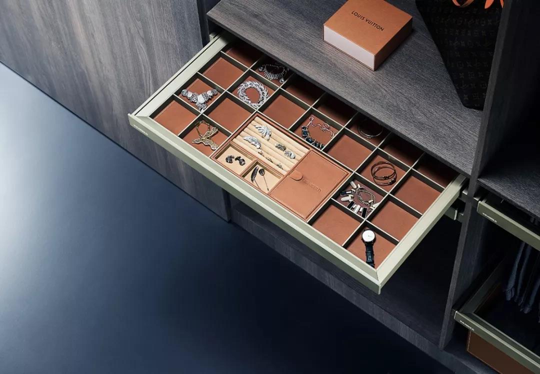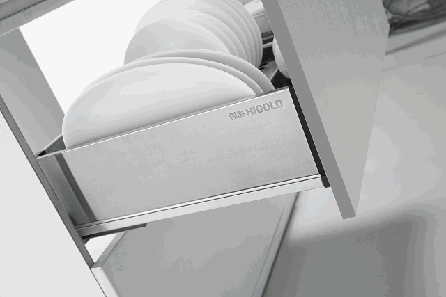 先后推出了高段位收納產(chǎn)品格希勒廚配五金、衣配五金、二代導(dǎo)軌抽屜