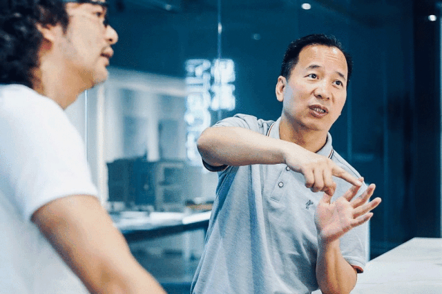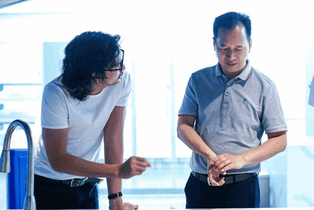 歐董和汪總親自帶領索菲亞董事長江淦鈞參觀星際展廳,向索菲亞高層展示了悍高的魅力。